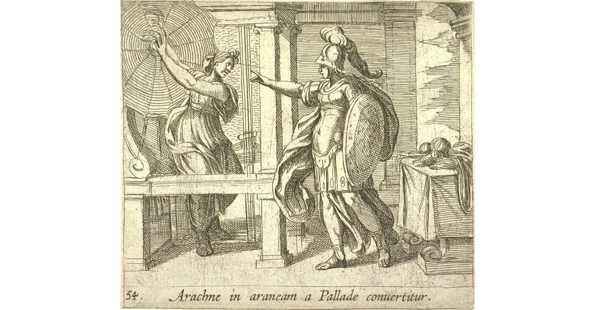 Yunan mitolojisinde sanatla ilgili anlatılan çok hoş ve hüzünlü öyküler vardır. Bunlardan bir tanesi Lydialı güzel ve yetenekli Arakne’nin örümceğe dönüşmesidir. Öyküye göre; “Athena, insanların yaptığı bütün sanatların ve işlerin, özellikle kadınların yaptıkları ince nakışların, işlemelerin koruyucusu idi. Hera’nın gelinliğini kendi elleri ile hazırlamıştı. Bu gibi işlerde oldukça başarılı olan Yunanlı kadınlar, sanatlarını Athena’yı çalışırken seyrederek öğrendiklerini, onun öğütlerini dinlediklerini söyleyerek övünürlerdi. Fakat iyi kalpli yumuşak Athena’nın da, zaman zaman öfkeye kapılıp kalp kırdığı, intikam aldığı olurdu.